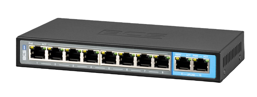 Nový switch 10/100/1000Mbps BCS podporuje standard PoE+ (802.3af/at) s napájením na každém z osmi portů