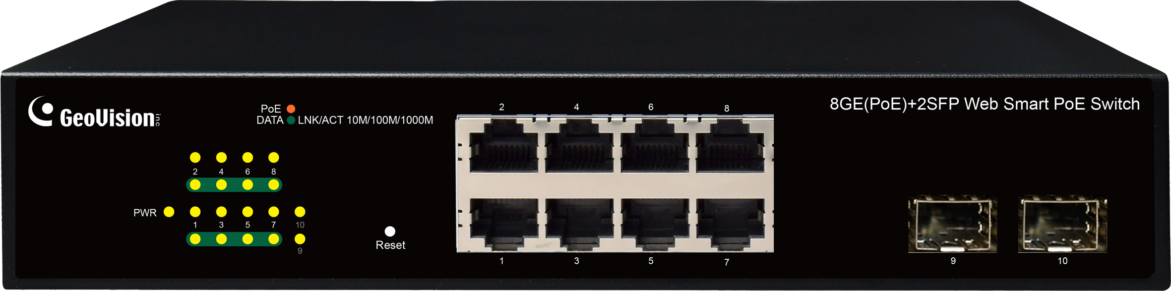 Switch je optimalizován pro kamery Geovision a je určen pro střední s velké sítě do 8 IP kamer. Na rozdíl od switche APOE0811 má pouze "EASY" webové rozhraní pro nastavení základních paramertů switche.