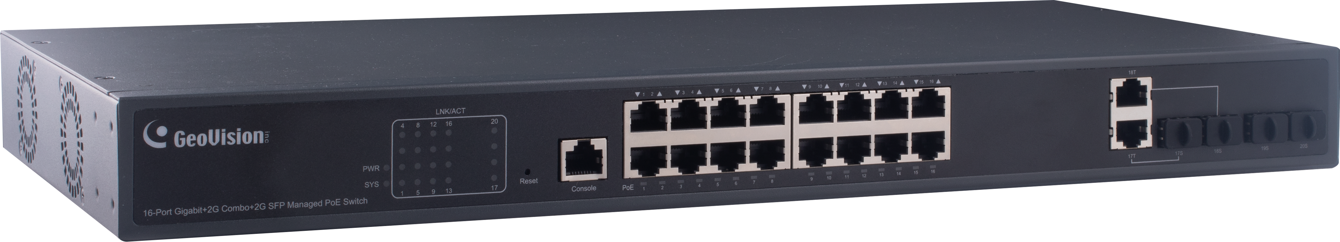 Switch je optimalizován pro kamery Geovision a je určen pro střední s velké sítě do 16 IP kamer. Díky webové konzoli je možná konfigurace switche.