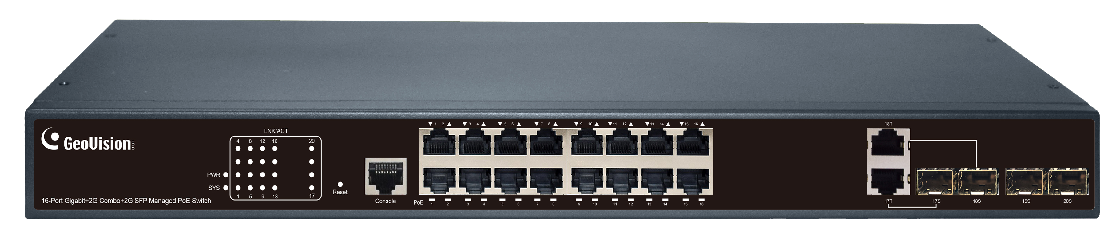Switch je optimalizován pro kamery Geovision a je určen pro střední s velké sítě do 16 IP kamer. Díky webové konzoli je možná konfigurace switche.