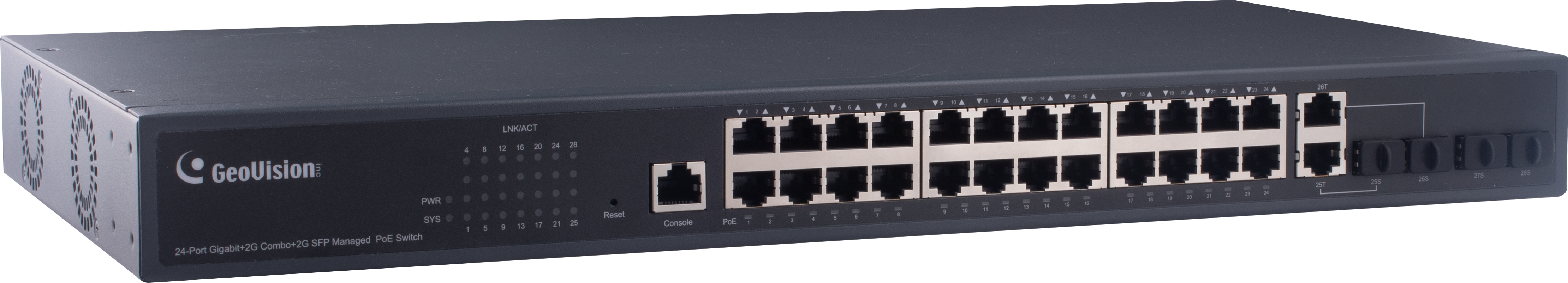 Switch je optimalizován pro kamery Geovision a je určen pro střední s velké sítě do 24 IP kamer. Díky webové konzoli je možná konfigurace switche.