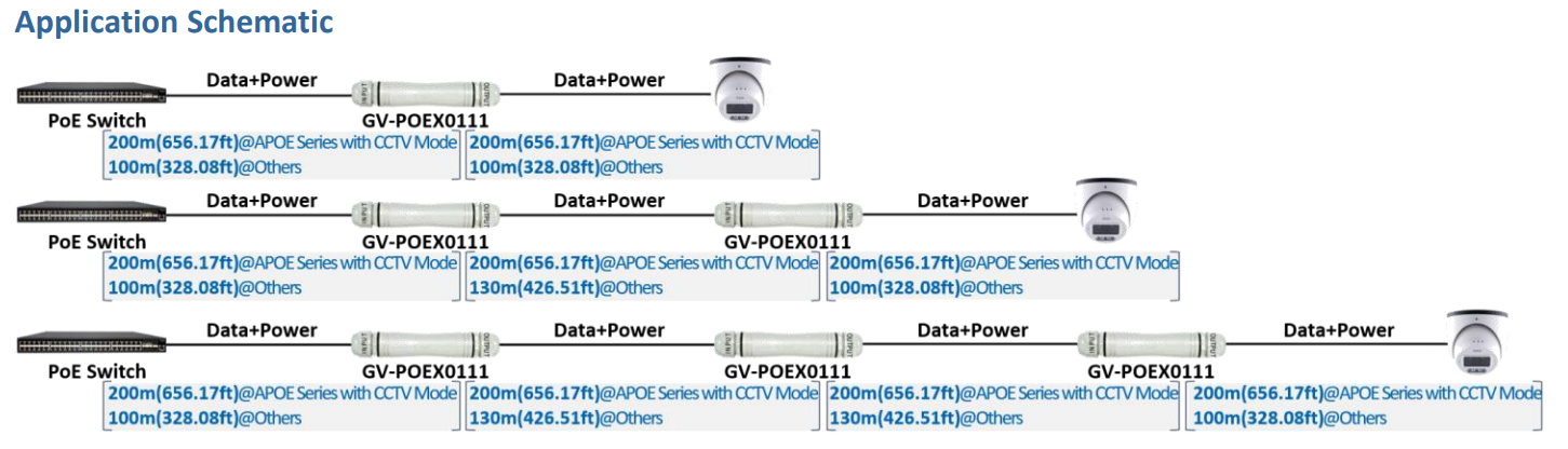 > Prodloužení až do 400 m (1968,5ft) s použitím 3x GV-POEX0111