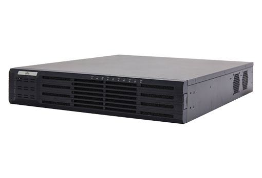 Profesionální záznamové zařízení až pro 32 kamer. Podporuje záznam ve formátu Ultra H265/ H265/ H264 a až 12Mpix rozlišení kamer. Podporuje připojení kamer i jiných výrobců s Onvif Profile S, Profile G, Profile T. Možnost připojení dvou monitorů z toho jeden až s rozlišením až 4K (3840x2160). Zařízení je možném osadit až 8x HDD SATA 3.5 s kapacitou až 10TB. Podporuje RAID 0, 1, 5, 6, 10, Hot Spare a funkci Hot Swap výměna HDD za provozu. Obsahuje 2 síťové karty 10/100/1000M pro propojení do dvou různých sítí, nebo funkci Teaming tj spojení obou karet a podporu rychlosti až 2000M. Kapacitu úložiště lze rozšířit pomocí eSATA externího zařízení. Obsahuje dálkové ovládání a myš pro snadnou obsluhu zobrazení a funkcí. Jedná se o autonomní řešení, které podporuje zobrazení, záznam a přehrátí záznamu kamer s možností filtrování AI událostí u kamer Geovision. Součástí je i řešené připojení P2P bez pevné IP adresy pomocí mobilní aplikace UVN-Link, kde je možné vyhledávat a filtrovat záznamy podle AI událostí (člověk/vozidlo pokud to podporuje kamera), nebo detekce pohybu. Zařízení nejde integrovat do dalších systému Geovision, jako je například NVR/VMS, Control Center, Edge Recording. Neobsahuje PoE napájení pro kamery.
