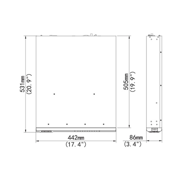 > Rozměry 442mm x 531mm x 86mm (2U)
